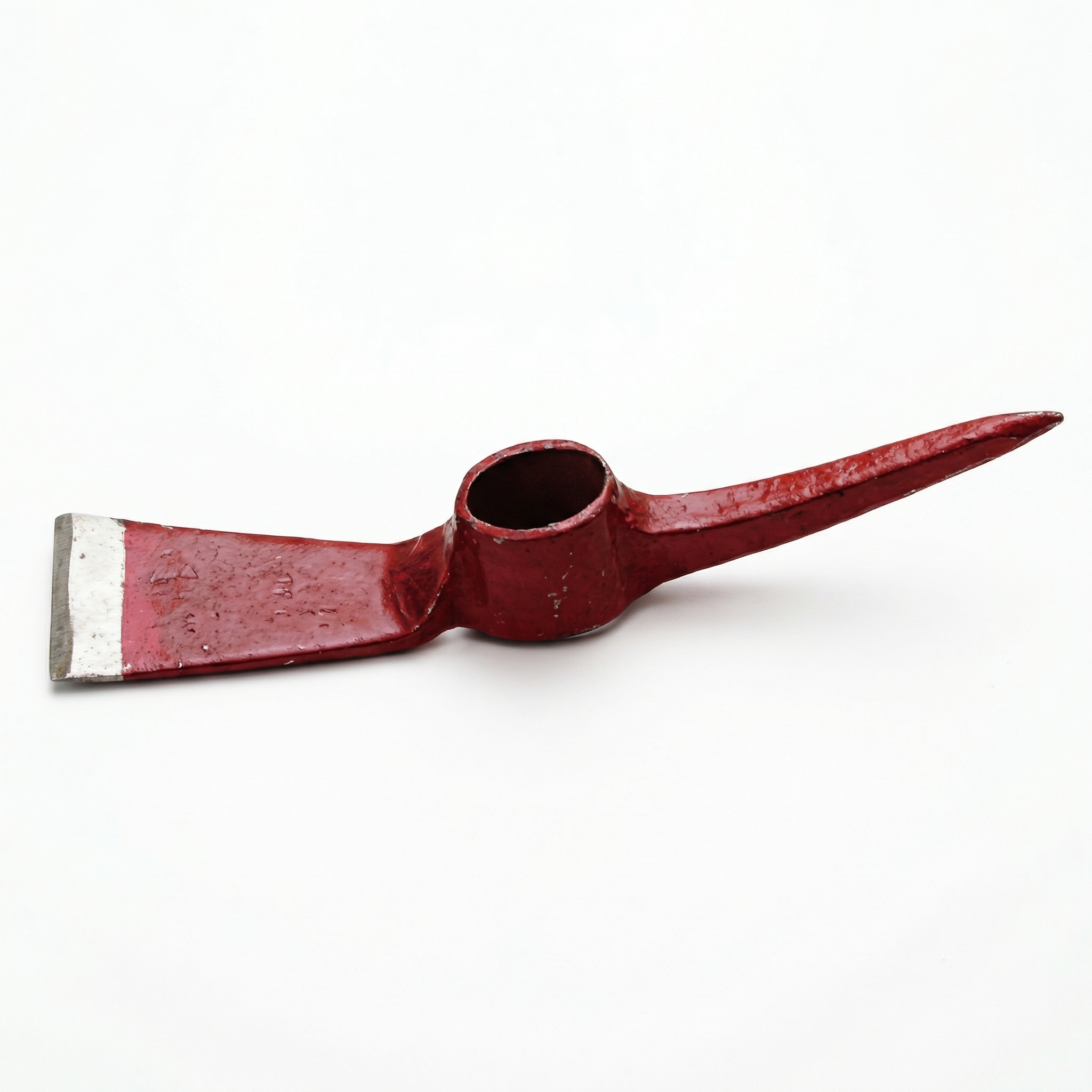 The main body features a one-piece forged structure: one end has a wide flat blade for prying and breaking hard materials, while the other end is a pointed tip designed to penetrate frozen soil and rock cracks. The hollow sleeve is compatible with standard pick handles, ensuring stable installation and reliable pressure resistance during operation.