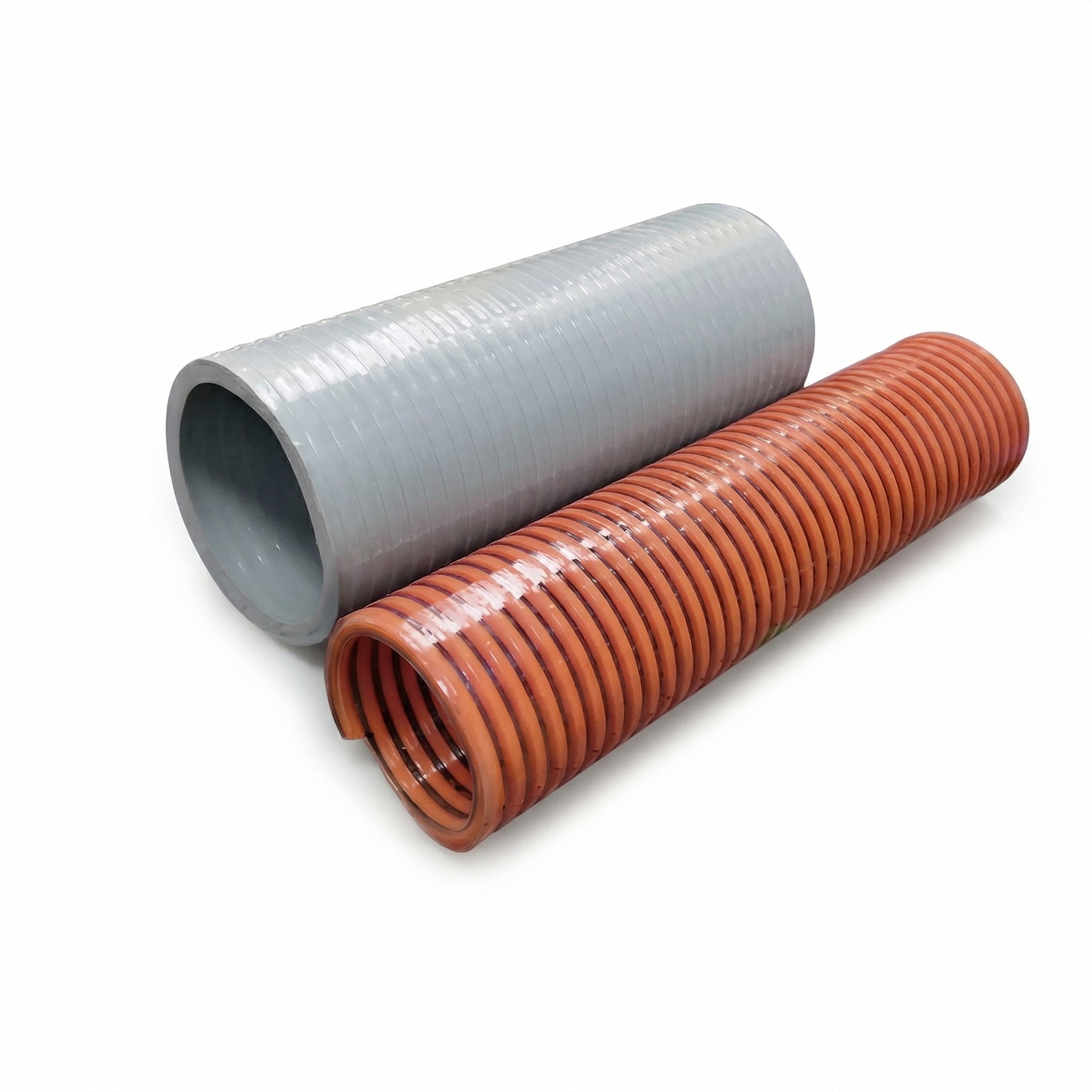 This hose features a flat spiral rib for enhanced crush resistance while maintaining flexibility. Its smooth inner wall reduces flow resistance and material build-up. The tough exterior is suitable for outdoor and rough terrain use. Available in multiple sizes to match different flow needs, with easy installation using standard fittings.